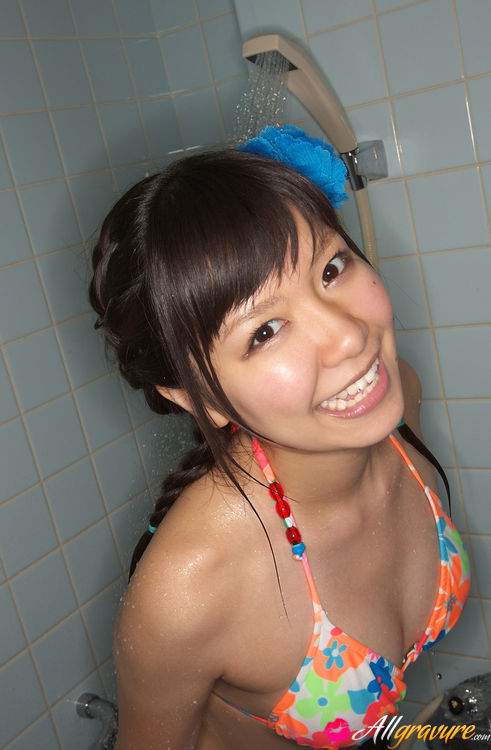 Sweet Ayana Tanigaki smiles and poses at the kitchen with banana