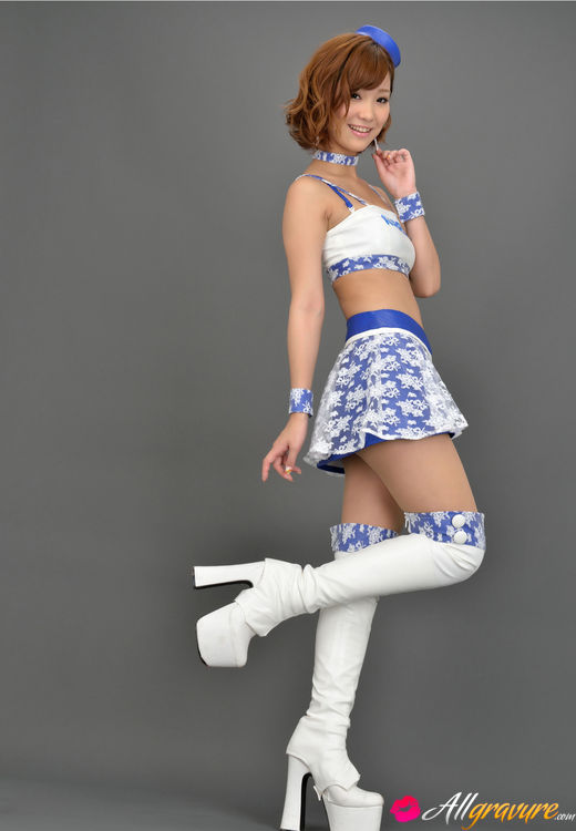 Ichika Nishimura Asian in long boots and short skirt is playful