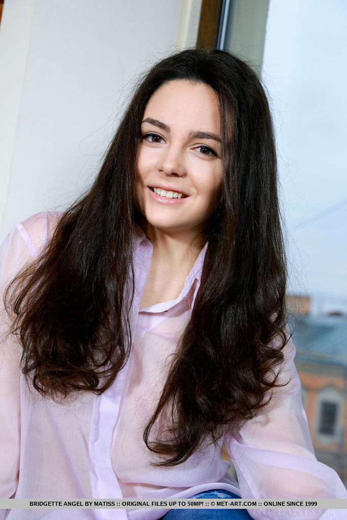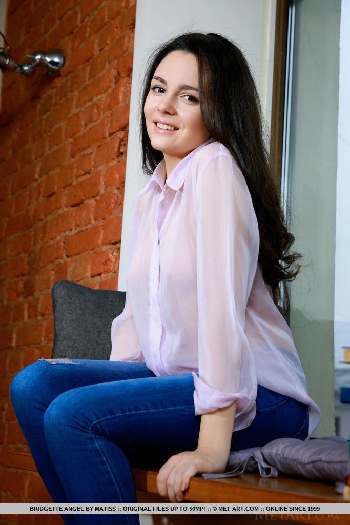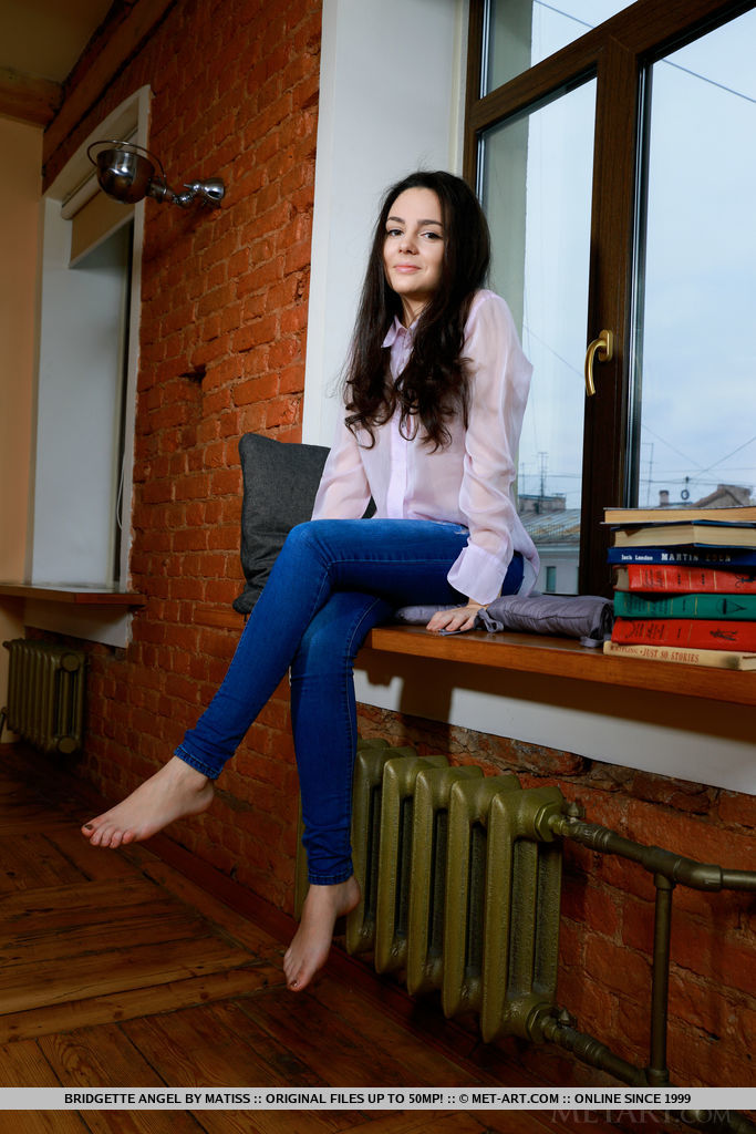 Bridgette Angel strips by the window baring her sexy body with delectable tits.